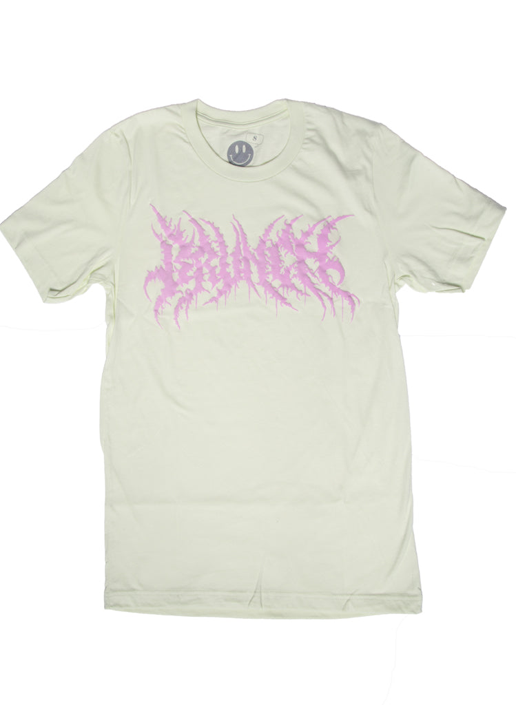 Features: hardcore brunch design printed in soft pink, puffy ink, 100% cotton, unisex sizing, "Gatorade green" colored fabric
